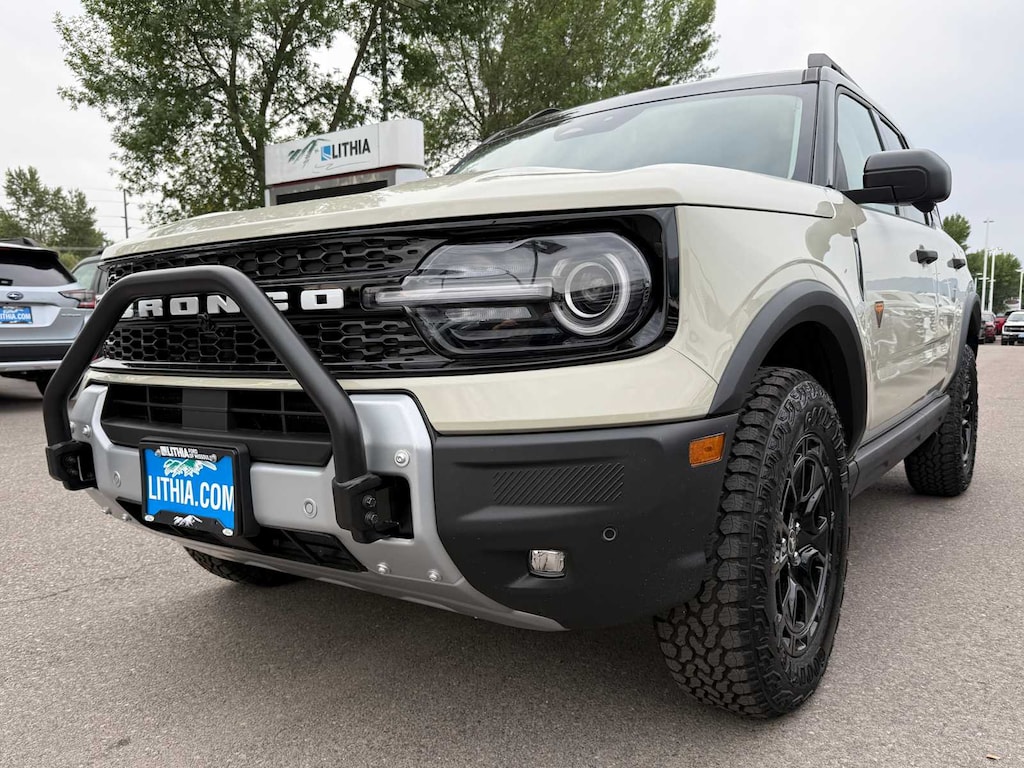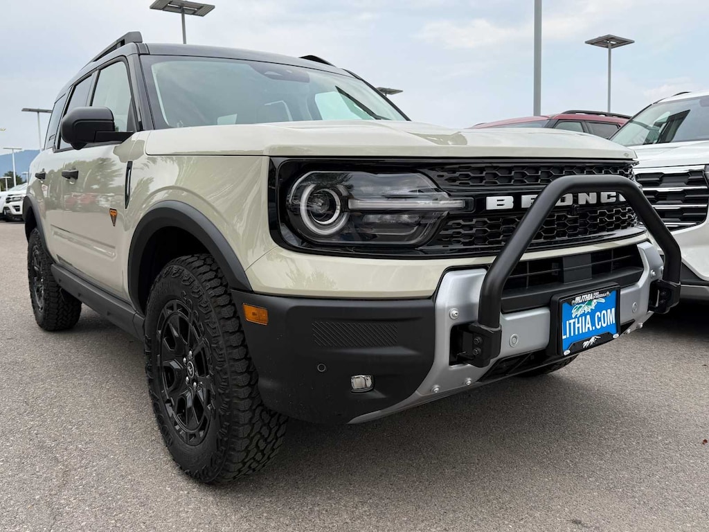 SASQUATCH BADLANDS PACKAGE Deletes overhead console w/sunglasses storage, dove gray seat inserts w/orchid yellow accents and stitching, Brush Guard, Tires: P235/65R17 All-Terrain, High Clearance Fender Flares, Recovery Hooks, 2 casted in front and 2 D-ring in rear, Auxiliary Switches & Wiring, HOSS 3.0 Off-Road Suspension, rear Bilstein position sensitive dampers, Wheels: 17 Ebony Black-Painted Aluminum, Rear Black Bumpers, Molded-in-color w/steel plates, 850W Engine Cooling Fan, Fender Tie Downs, POWER MOONROOF, BADLANDS TECH PACKAGE noise reduction module, B&O Sound System by Bang & Olufsen, 10 speakers and subwoofer, Connected Navigation, 1-year subscription, pinch-to-zoom capability, live traffic, predictive destinations and route guidance and one box search, Navigation services require SYNC 4 and Bronco Trail App (optional on select vehicles), complimentary connect service and the FordPass app (see FordPass terms for details), Customer receives a complimentary 1-year subscription of navigation services when an eligible vehicle is added to a members FordPass account, Trial period begins on the new vehicle warranty start date, At the end of the complimentary period, navigation service will terminate, Connected services and features depend on compatible AT&T network availability, Evolving. Ford Badlands with Desert Sand exterior and Dark Space Gray interior features a 4 Cylinder Engine with 250 HP at 5500 RPM*.