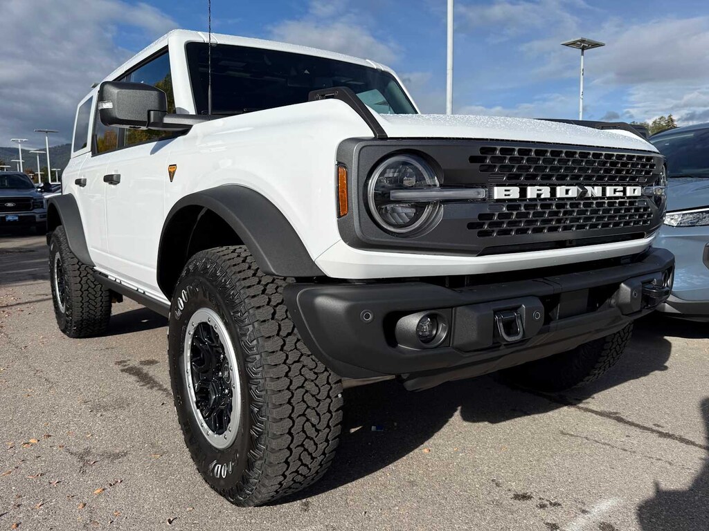 SASQUATCH PACKAGE Wheels: 17 Carbonized Gray Painted Aluminum, High Clearance Fender Flares, High Clearance Suspension, 4.7 Final Drive Ratio, electronic-locking front and rear axle, Tires: LT315/70R17 Rugged-Terrain, Position-Sensitive Bilstein Shock Absorbers, BODY COLOR-PAINTED HARD TOP Hard Top Sound Deadening Headliner, Rear-Window Defroster & Washer, ENGINE: 2.7L ECOBOOST V6 GVWR: 6,180 lbs, TRANSMISSION: 10-SPEED AUTOMATIC remote start system, trail control, trail turn assist and trail one-pedal driving, 4.46 Axle Ratio. Ford Badlands with Oxford White exterior and Black Onyx interior features a V6 Cylinder Engine with 315 HP at 5500 RPM*.