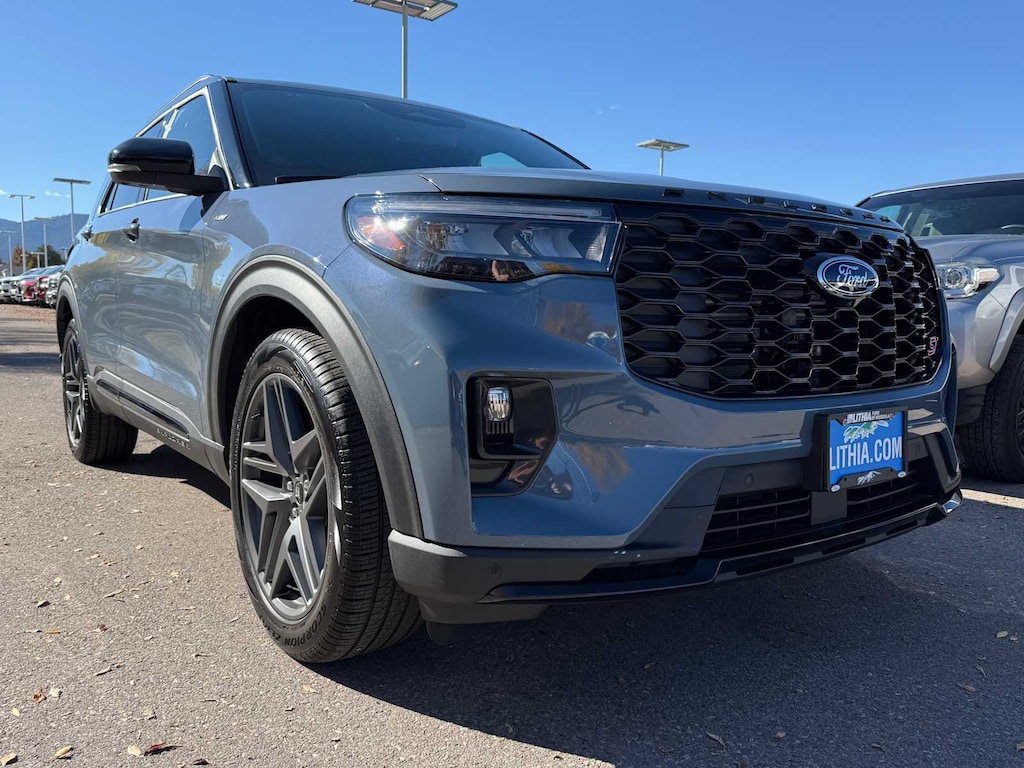 SUN AND SOUND PACKAGE Panoramic Vista Roof w/Power Shade, Multicontour Seats w/Front Active Motion, B&O Sound System by Bang & Olufsen, 980 watt and 14 speakers, 18 SPARE WHEEL & JACK KIT 18 spare tire, TRANSMISSION: 10-SPEED AUTOMATIC SelectShift capability w/paddle shifters (STD). Ford ST with Vapor Blue exterior and Onyx interior features a V6 Cylinder Engine with 400 HP at 5500 RPM*.