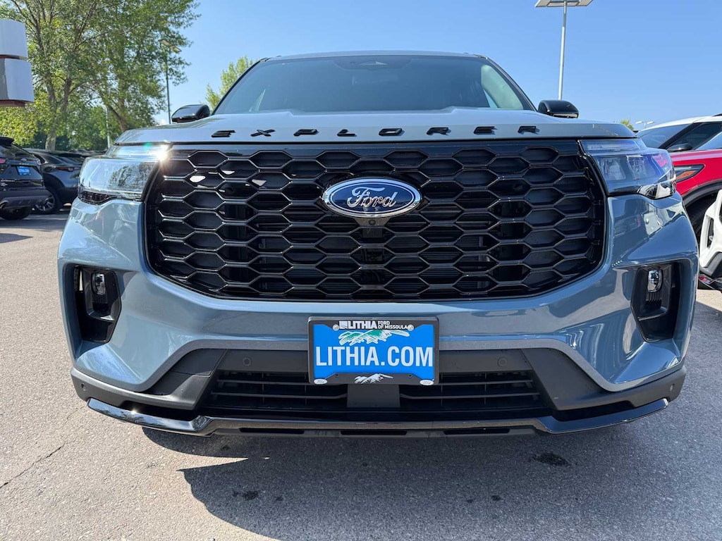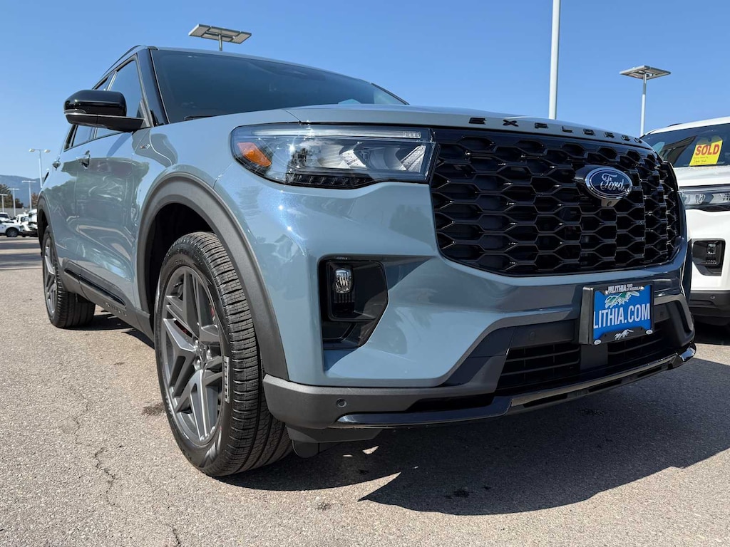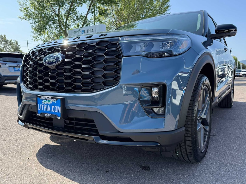 PANORAMIC VISTA ROOF W/POWER SHADE remote control front windows (opens front windows from outside of the vehicle via the key fob), PREMIUM PACKAGE 110V/150W AC Power Outlet, Replaces the powerpoint port on the rear side of the center floor console, Auto-Dimming Interior Rearview Mirror, Memory Drivers Seat, Power-Folding Sideview Mirrors w/Autofold, power and heated glass, LED turn signal indicators, security approach lamps, drivers side auto-dimming and driver and passenger side memory, Rain-Sensing Wipers (Front Only), Ambient Lighting, Wireless Charging Pad, 2nd Row Heated Seats, ST-LINE STREET PACK Wheels: 21 Magnetite-Painted Aluminum, Tires: P275/45R21 AS BSW, Performance Brakes, Red Painted Perf Front & Rear Brake Calipers, 18 SPARE WHEEL & JACK KIT 18 spare tire, 2ND ROW CAPTAINS CHAIRS W/E-Z ENTRY & ARMREST E-Z entry is manually activated, Replaces standard 2nd row 35/30/35 bench seats, TRANSMISSION: 10-SPEED AUTOMATIC (STD). Ford ST-Line with Vapor Blue exterior and Onyx interior features a 4 Cylinder Engine with 300 HP at 5500 RPM*.
