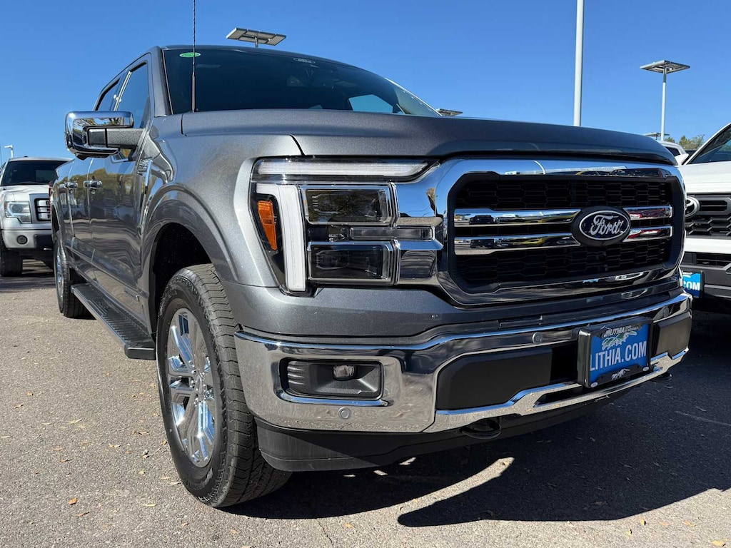 EQUIPMENT GROUP 501A MID Tires: 275/60R20 All-Terrain, Power-Sliding Rear Window, 6 Angular Bright Anodized Step Bar, Illuminated Driver & Passenger Visors, covered mirrors, Wheels: 20 Chrome-Like PVD, ENGINE: 3.5L POWERBOOST FULL-HYBRID V6 Pro Power Onboard 2.4KW and removes 36 gallon fuel tank, GVWR: 7,400 lbs Payload Package, Electronic Locking w/3.73 Axle Ratio, TWIN PANEL MOONROOF. Ford LARIAT with Carbonized Gray exterior and Black interior features a V6 Cylinder Engine with 430 HP at 6000 RPM*.