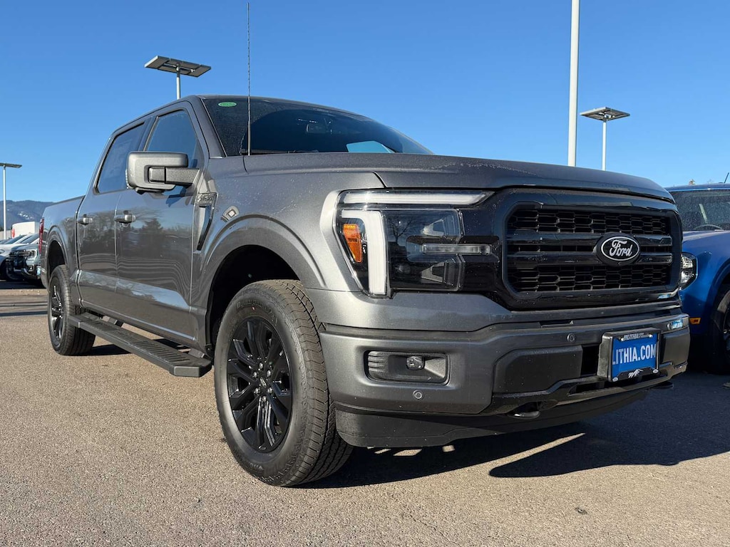 EQUIPMENT GROUP 502A HIGH Ambient Lighting - Ice Blue Color Only, Wheels: 20 Chrome-Like PVD, Radio: B&O Unleashed Sound System by Bang & Olufsen, HD Radio and 14 speakers including subwoofer, 2nd Row Heated Seats, Mobile Office Package, Wireless Charging, Partitioned Lockable Rear Storage, Console Worksurface, 6 Extended Angular Bright Anodized Step Bar, Power-Sliding Rear Window, Heads-Up Display, Illuminated Driver & Passenger Visors, covered mirrors, Tires: 275/60R20 All-Terrain, TWIN PANEL MOONROOF, TOUGH BED SPRAY-IN BEDLINER, ELECTRONIC LOCKING W/3.55 AXLE RATIO, TRANSMISSION: ELECTRONIC 10-SPEED AUTOMATIC SelectShift w/progressive range select and selectable drive modes: normal, ECO, sport, tow/haul, slippery, deep snow/sand and mud/rut (STD). Ford LARIAT with Carbonized Gray exterior and Black interior features a 8 Cylinder Engine with 400 HP at 6000 RPM*.