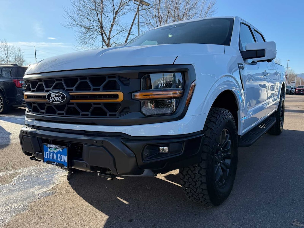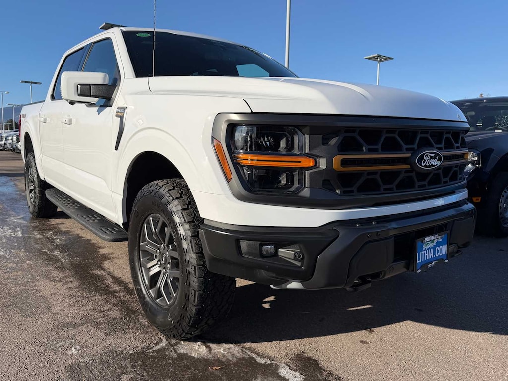 EQUIPMENT GROUP 402A HIGH Power-Adjustable Pedals w/Memory, Bed Utility Package, Tailgate Step w/Tailgate Work Surface, LED Box Lighting, Power Tailgate, 4 Pickup Box Tie-Down Plates, Premium Wrapped Steering Wheel, Modular Front Bumper & Carbon Black Rear Bumper, Mobile Office Package, Wireless Charging, Partitioned Lockable Rear Storage, Console Worksurface, Media Bin Door, Hi-Lock Transfer Case, Power Glass Heated Sideview Mirrors, power-folding, turn signal, auto-dimming feature (drivers side), high-intensity LED security approach lamps, LED sideview mirror spotlights and body-color skull caps, Auto-Dimming Rearview Mirror, Ambient Lighting, LED Taillamps, Two-Speed Automatic AWD w/Mechanical Locking 4WD, Radio: B&O Unleashed Sound System by Bang & Olufsen, HD Radio and 14 speakers, TWIN PANEL MOONROOF, TRANSMISSION: ELECTRONIC 10-SPEED AUTOMATIC SelectShift w/progressive range select and selectable drive modes: normal, ECO, sport, tow/haul, slippery, deep snow/sand and mud/rut (STD). Ford Tremor with Oxford White exterior and Black interior features a 8 Cylinder Engine with 400 HP at 6000 RPM*.