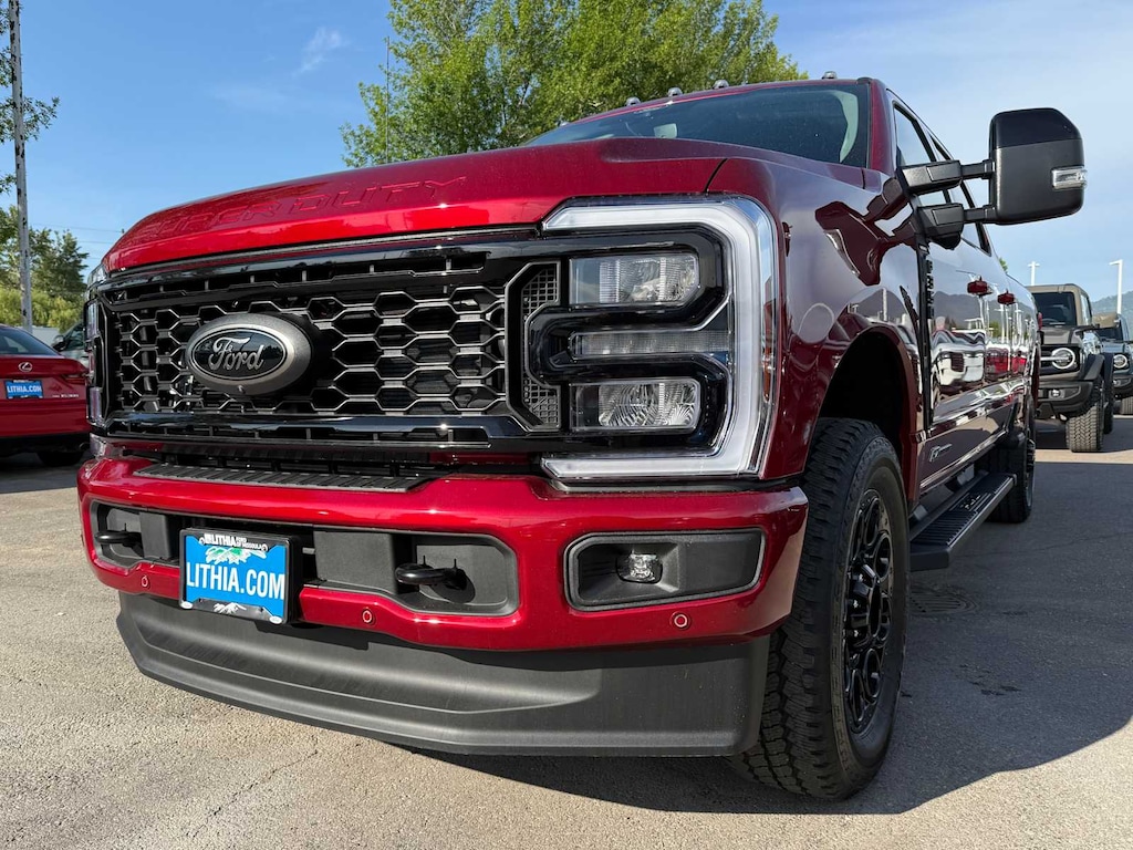 ENGINE: 6.7L 4V OHV POWER STROKE V8 TURBO DIESEL B20 manual push-button engine-exhaust braking and Operator Commanded Regeneration (OCR), 48 Gallon Fuel Tank, 250 Amp Alternator, GVWR: 12,400 lb Payload Package, 3.31 Axle Ratio, Dual AGM 68 AH Battery, LARIAT ULTIMATE PACKAGE Pro Trailer Hitch Assist, Ford Co-Pilot 360 Assist 2.0, 360-degree camera, rear view camera and reverse brake assist, Pre-Collision Assist, Automatic Emergency Braking (AEB), pedestrian detection, forward collision warning, dynamic brake support and intersection assist, Post-Collision Braking, Lane-Keeping System, lane-keeping alert, lane-keeping aid and driver alert, Front & Rear Parking Sensors, Automatic High Beam, Adaptive Cruise Control w/Stop-and-Go, lane centering and predictive speed assist, 4-Way Adjustable Headrests, Power-Sliding Rear-Window w/Defrost, Tailgate Step & Handle, Head-Up Display, Power-Deployable Running Boards, Pro Trailer Backup Assist, trailer reverse guidance, Radio: B&O Unleashed Sound System by Bang & Olufsen, HD Radio w/14 speakers, BLACK APPEARANCE PACKAGE front and rear black Ford ovals, box side decal (4x4, FX4 or Tremor) and ebony black fender vent surround dark fender badge, Rear Wheel Well Liners (Pre-Installed), Black Painted Front Grille Surround, Ebony Black Painted Mirror Caps, Tough Bed Spray-In Bedliner, tailgate-guard, black box bed tie-down hooks and black bed attachment bolts, Body Color Front & Rear Bumpers, Wheels: 20 Machined & Ebony Black High Gloss, Black premium painted aluminum, gloss black hub cover/center ornament, Tires: LT275/65Rx20E BSW Automatic Transmission (4), Spare may not be the same as road tire, 6 Ebony Black Angular Running Boards, TWIN PANEL POWER MOONROOF map lights and moonroof switches, MAX RECLINE SEATS 10-way power driver and 8-way power passenger and 4-way headrests, ELECTRONIC-LOCKING W/3.31 AXLE RATIO, TRANSMISSION: TORQSHIFT 10-SPEED AUTOMATIC SelectShift and selectable drive modes: normal, eco, slippery roads, tow/haul and off-road. Ford LARIAT with Ruby Red Metallic Tinted Clearcoat exterior and Black Onyx interior features a 8 Cylinder Engine with 475 HP at 2600 RPM*.