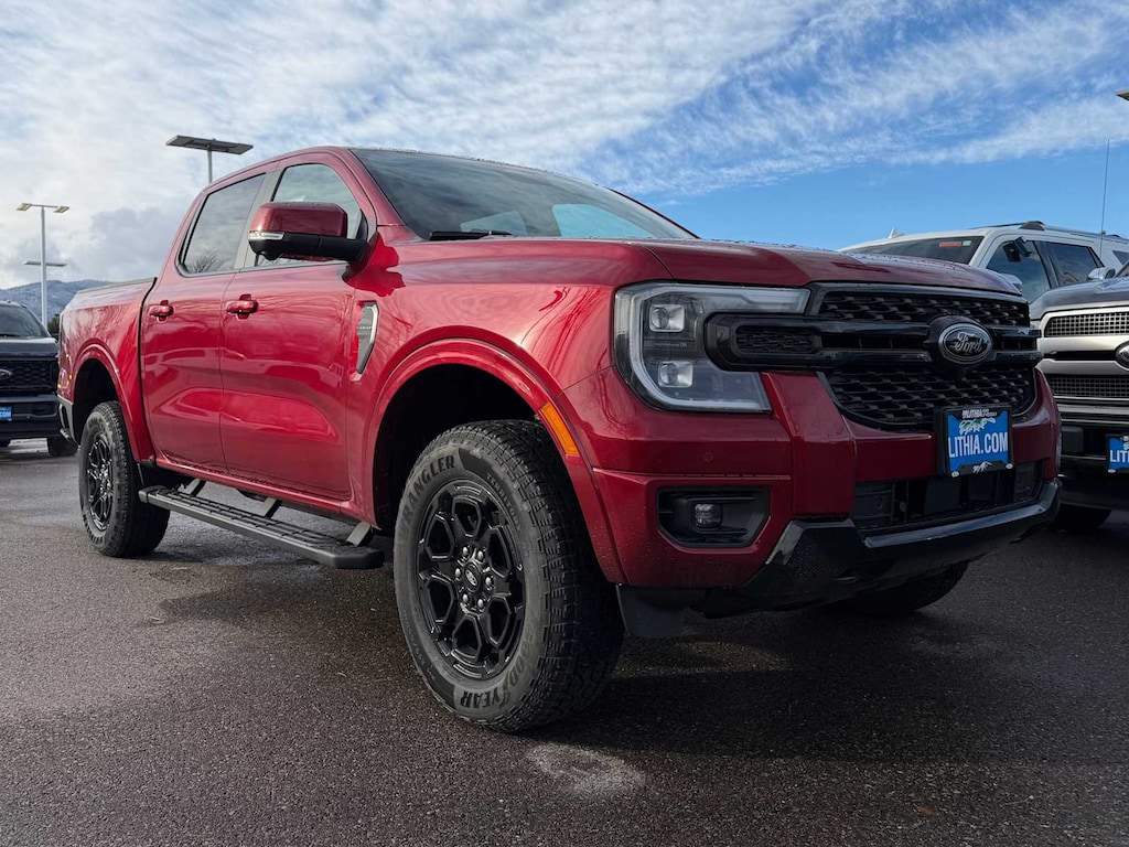 ENGINE: 2.7L ECOBOOST V6 auto start-stop technology, FX4 OFF-ROAD PACKAGE FX4 Selectable Drive Modes, mud/ruts and sand, Exposed Steel Bash Plate, engine and transfer case shield and fuel tank guard, Electronic-Locking Rear Differential, Off-Road Tuned Shocks, Off-Road Screen in Center Stack, Trail Control, FX4 Off-Road Box Decal, BLACK APPEARANCE PACKAGE Black Center Bar & Surround Grille, Unique Carpet Mats, Wheels: 18 Black Painted, Body-Color Painted Front Fascia, black lower valance, Front & Rear Black Ford Ovals, Black Rear Bumper, Painted Body-Color Wheel Lip Molding, BLACK RUNNING BOARDS, TRAILER TOW PACKAGE towing capability up to TBD lbs and 4-pin/7-pin wiring harness, Class IV Trailer Hitch Receiver, TRANSMISSION: ELECTRONIC 10-SPEED AUTOMATIC selectable drive modes: normal, ECO, sport, tow/haul and slippery (STD). Ford LARIAT with Ruby Red Metallic Tinted Clearcoat exterior and Ebony interior features a V6 Cylinder Engine with 315 HP at 5500 RPM*.
