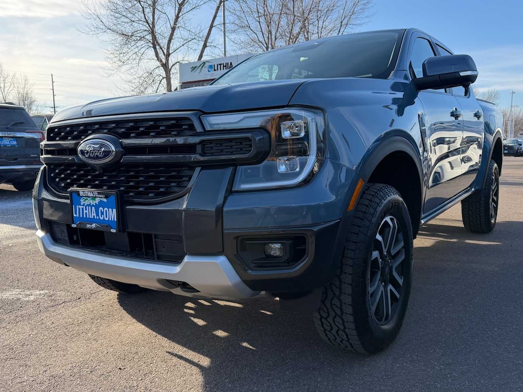 FX4 OFF-ROAD PACKAGE FX4 Selectable Drive Modes, mud/ruts and sand, Exposed Steel Bash Plate, engine and transfer case shield and fuel tank guard, Electronic-Locking Rear Differential, Off-Road Tuned Shocks, Off-Road Screen in Center Stack, Trail Control, FX4 Off-Road Box Decal, TRANSMISSION: ELECTRONIC 10-SPEED AUTOMATIC selectable drive modes: normal, ECO, sport, tow/haul and slippery (STD). Ford LARIAT with Azure Gray Metallic Tri-Coat exterior and Ebony interior features a 4 Cylinder Engine with 270 HP at 5500 RPM*.