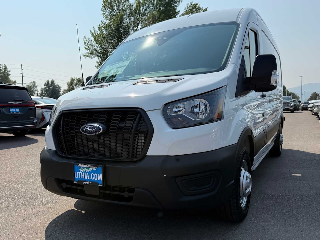 ENGINE: 3.5L ECOBOOST V6, RADIO: AM/FM STEREO W/SYNC 4 12 multi-function display, Bluetooth®, dual USB ports, embedded voice recognition, connected navigation and 4 speakers (front), Electronic Air Temperature Control, HEAVY-DUTY TRAILER TOW PACKAGE Deletes rear tow hook, 4/7 pin connector assembly and rear jumper and relay system for backup/B+/running lights, This package does not include a Trailer Brake Controller (TBC) (67D), Frame Mounted Hitch Receiver, Tow/Haul Mode w/Trailering Wiring Provisions, REVERSE SENSING SYSTEM, DARK PALAZZO GRAY CLOTH BUCKET SEATS W/ARMRESTS 2-way manual driver seat w/lumbar and 2-way manual passenger seat, TRANSMISSION: 10-SPD AUTOMATIC W/OD & SELECTSHIFT auxiliary transmission oil cooler (STD), HIGH RESOLUTION DIGITAL CAMERA. Ford Transit Cargo Van with Oxford White exterior and Dark Palazzo Gray interior features a V6 Cylinder Engine with 310 HP at 5000 RPM*.