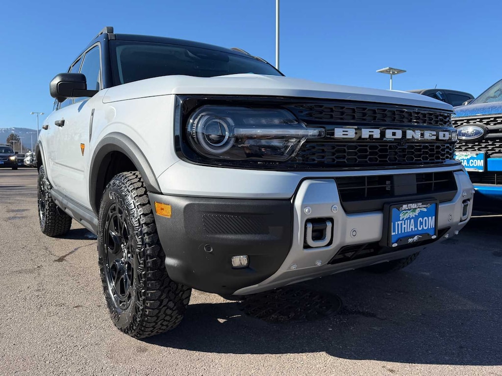 SASQUATCH BADLANDS PACKAGE Deletes overhead console w/sunglasses storage, dove gray seat inserts w/orchid yellow accents and stitching, Tires: P235/65R17 All-Terrain, High Clearance Fender Flares, 2 Rear D-Ring Recovery Hooks, Auxiliary Switches & Wiring, HOSS 3.0 Off-Road Suspension, rear Bilstein position sensitive dampers, Wheels: 17 Ebony Black-Painted Aluminum, Rear Black Bumpers w/Steel Plates, Molded-in-Color (MIC), 850W Engine Cooling Fan, POWER MOONROOF, BADLANDS TECH PACKAGE Noise Reduction Module, Radio: HD w/B&O Sound System by Bang & Olufsen, 10 speakers and subwoofer, Connected Navigation (1-Year Included). Ford Badlands with Space White exterior and Dark Space Gray interior features a 4 Cylinder Engine with 250 HP at 5500 RPM*.