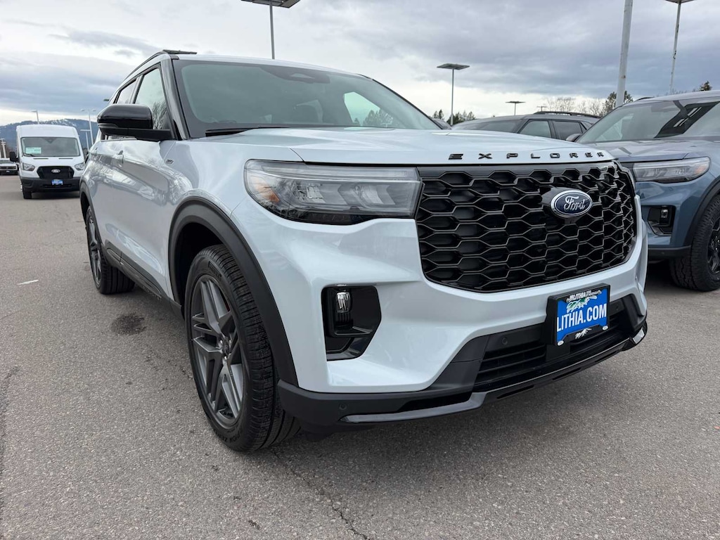 PANORAMIC FIXED GLASS ROOF W/POWER SHADE remote control front windows (opens front windows from outside of the vehicle via the key fob), ST-LINE STREET PACK Wheels: 21 Magnetite-Painted Aluminum, Tires: P275/45R21 AS BSW, Performance Brakes, Red Painted Perf Front & Rear Brake Calipers, PREMIUM PACKAGE 110V/150W AC Power Outlet, Replaces the powerpoint port on the rear side of the center floor console, Auto-Dimming Interior Rearview Mirror, Memory Drivers Seat, Manual-Folding Sideview Mirrors, power and heated glass, LED turn signal indicators, security approach lamps, drivers side auto-dimming and driver and passenger side memory, Rain-Sensing Wipers (Front Only), Ambient Lighting, 2nd Row Heated Seats, 18 SPARE WHEEL & JACK KIT 18 spare tire, 2ND ROW CAPTAINS CHAIRS W/E-Z ENTRY & ARMREST E-Z Entry is manually activated, Replaces standard 2nd row 35/30/35 bench seats, TRANSMISSION: 10-SPEED AUTOMATIC (STD). Ford ST-Line with Space White exterior and Onyx interior features a 4 Cylinder Engine with 300 HP at 5500 RPM*.
