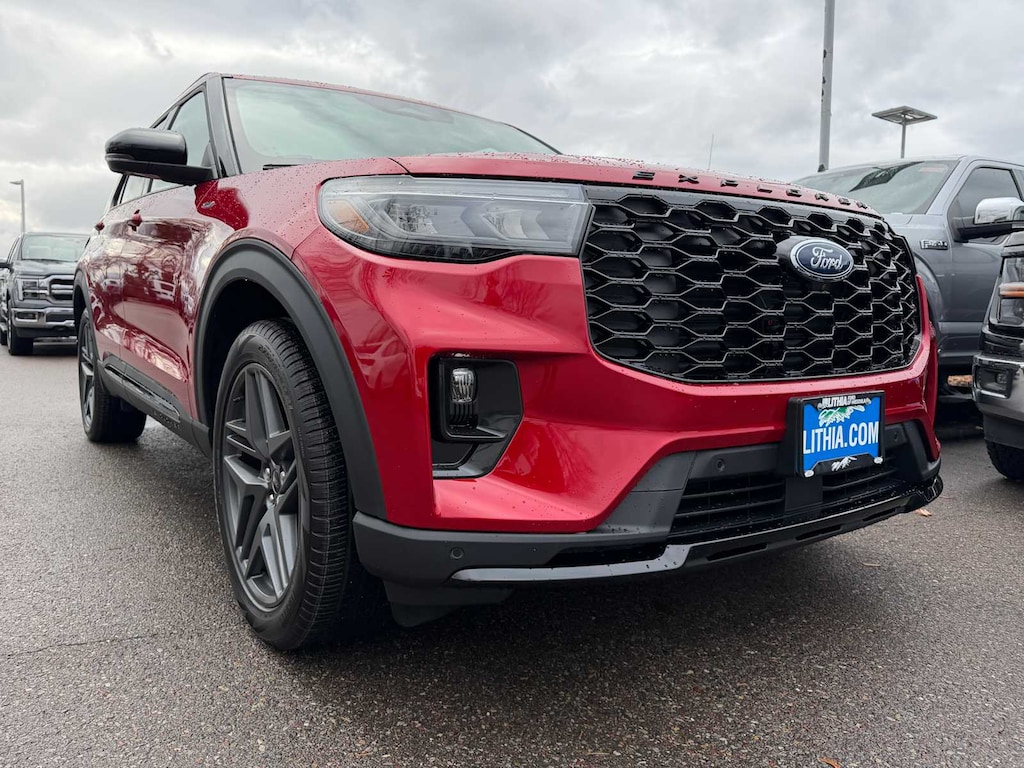 PANORAMIC FIXED GLASS ROOF W/POWER SHADE remote control front windows (opens front windows from outside of the vehicle via the key fob), ST-LINE STREET PACK Wheels: 21 Magnetite-Painted Aluminum, Tires: P275/45R21 AS BSW, Performance Brakes, Red Painted Perf Front & Rear Brake Calipers, PREMIUM PACKAGE 110V/150W AC Power Outlet, Replaces the powerpoint port on the rear side of the center floor console, Auto-Dimming Interior Rearview Mirror, Memory Drivers Seat, Manual-Folding Sideview Mirrors, power and heated glass, LED turn signal indicators, security approach lamps, drivers side auto-dimming and driver and passenger side memory, Rain-Sensing Wipers (Front Only), Ambient Lighting, 2nd Row Heated Seats, 18 SPARE WHEEL & JACK KIT 18 spare tire, 2ND ROW CAPTAINS CHAIRS W/E-Z ENTRY & ARMREST E-Z Entry is manually activated, Replaces standard 2nd row 35/30/35 bench seats, TRANSMISSION: 10-SPEED AUTOMATIC (STD). Ford ST-Line with Rapid Red Metallic Tinted Clearcoat exterior and Onyx interior features a 4 Cylinder Engine with 300 HP at 5500 RPM*.