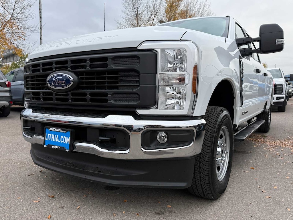 ENGINE: 6.7L 4V OHV POWER STROKE V8 TURBO DIESEL B20 manual push-button engine-exhaust braking and Operator Commanded Regeneration (OCR), 48 Gallon Fuel Tank, 190 Amp Alternator (Diesel), 3.31 Axle Ratio, Dual AGM 68 AH Battery, PLATFORM RUNNING BOARDS, ELECTRONIC-LOCKING W/3.31 AXLE RATIO, XL CHROME PACKAGE 4 pickup box tie-down plates, Halogen Fog Lamps, Bright Chrome Hub Covers & Center Ornaments, Chrome Rear Step Bumper, Chrome Front Bumper, SPARE TIRE, WHEEL, CARRIER & JACK, TRANSMISSION: TORQSHIFT 10-SPEED AUTOMATIC SelectShift and selectable drive modes: normal, eco, slippery roads, tow/haul and off-road. Ford XL with Oxford White exterior and Medium Dark Slate interior features a 8 Cylinder Engine with 475 HP at 2600 RPM*.