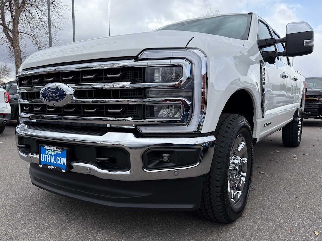 ENGINE: 6.7L 4V OHV POWER STROKE V8 TURBO DIESEL B20 manual push-button engine-exhaust braking and Operator Commanded Regeneration (OCR), 250 Amp Alternator, 34 Gallon Fuel Tank, 3.31 Axle Ratio, Dual 68 AH AGM 750 CCA Batteries, TWIN PANEL POWER MOONROOF map lights and moonroof switches, CHROME PACKAGE Unique Chrome Mirror Caps, Chrome Front & Rear Bumpers, Wheels: 20 Chrome PVD Aluminum, unique center ornament, Chrome Door Handles, Monochromatic Paint, Chrome Exhaust Tip, ELECTRONIC-LOCKING W/3.31 AXLE RATIO, TRANSMISSION: TORQSHIFT 10-SPEED AUTOMATIC SelectShift and selectable drive modes: normal, eco, slippery roads, tow/haul and off-road. Ford King Ranch with Star White Metallic Tri-Coat exterior and Java interior features a 8 Cylinder Engine with 475 HP at 2600 RPM*.