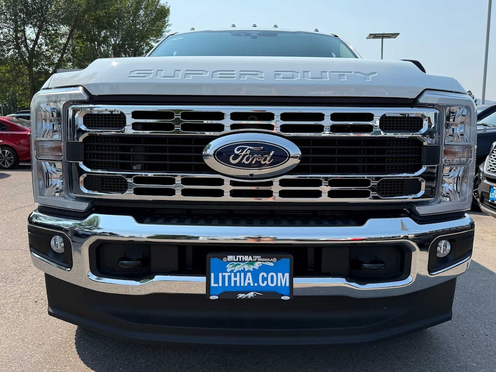 ENGINE: 6.7L 4V OHV POWER STROKE V8 TURBO DIESEL B20 manual push-button engine-exhaust braking and Operator Commanded Regeneration (OCR), 48 Gallon Fuel Tank, 3.55 Axle Ratio, Dual AGM 68 AH Battery, 360-DEGREE CAMERA PACKAGE wired auxiliary trailer camera compatibility, Rear Parking Sensors, reverse brake assist, LED Center High-Mounted Stop Lamp (CHMSL) Camera, LED center high-mounted stop lamp (CHMSL), 360-Degree Camera, picture in picture capability, BLIS w/Cross-Traffic Alert, trailer coverage, 6 ANGULAR BRIGHT ANODIZED STEP BARS, WHEELS: 17 FORGED POLISHED ALUMINUM bright hub covers/center ornaments (4 aluminum outer and 2 steel inner), LIMITED SLIP W/3.55 AXLE RATIO, DEFROST W/FIXED & PRIVACY GLASS, TRANSMISSION: TORQSHIFT 10-SPEED AUTOMATIC SelectShift and selectable drive modes: normal, eco, slippery roads, tow/haul and off-road. Ford XLT with Oxford White exterior and Medium Dark Slate interior features a 8 Cylinder Engine with 475 HP at 2600 RPM*.