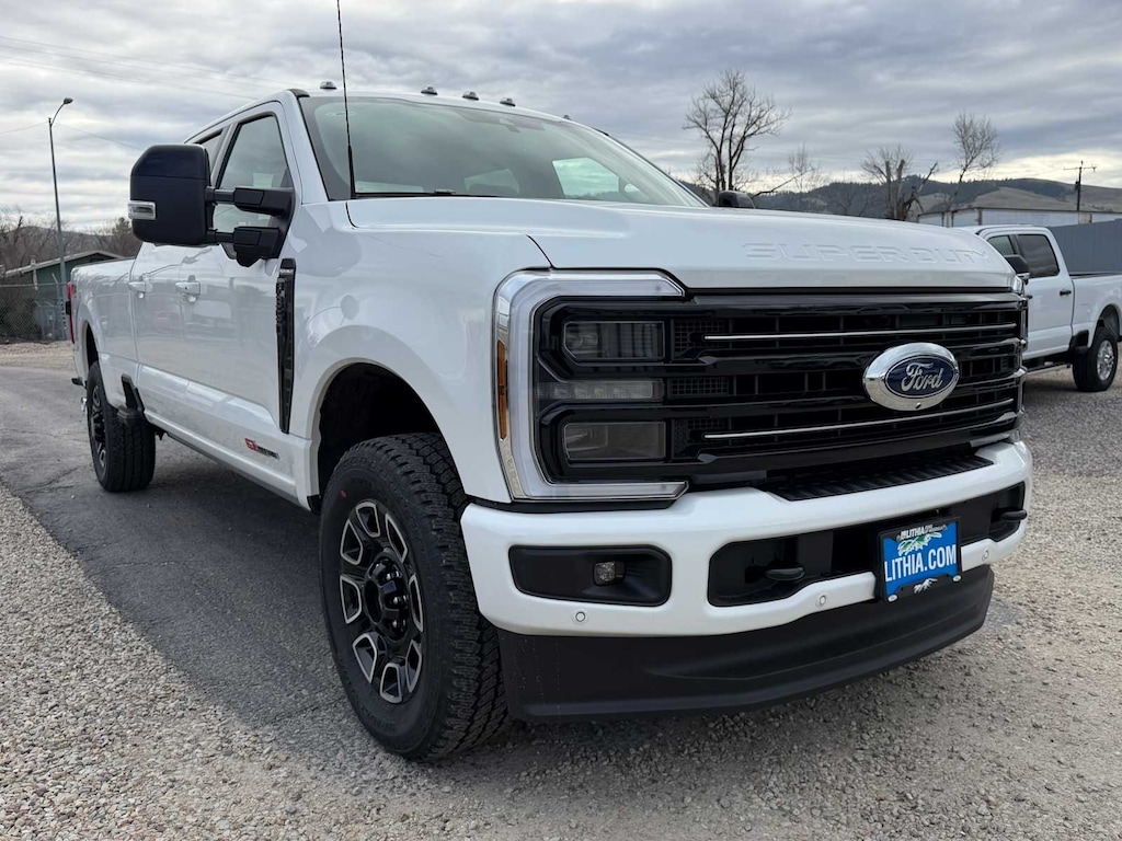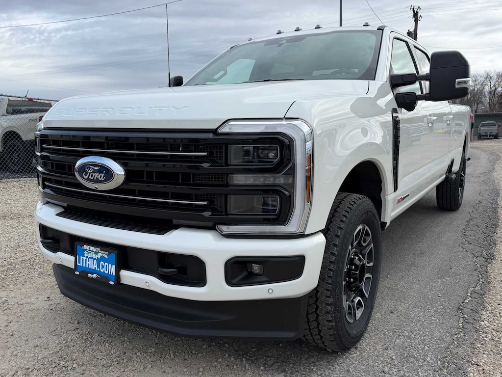 TWIN PANEL POWER MOONROOF map lights and moonroof switches, MAX RECLINE SEATS 10-way power driver and 8-way power passenger and 4-way headrests, ELECTRONIC-LOCKING W/3.55 AXLE RATIO, TRANSMISSION: TORQSHIFT 10-SPEED AUTOMATIC SelectShift and selectable drive modes: normal, eco, slippery roads, tow/haul and off-road (STD). Ford Platinum with Star White Metallic Tri-Coat exterior and Black Onyx interior features a 8 Cylinder Engine with 430 HP at 5500 RPM*.
