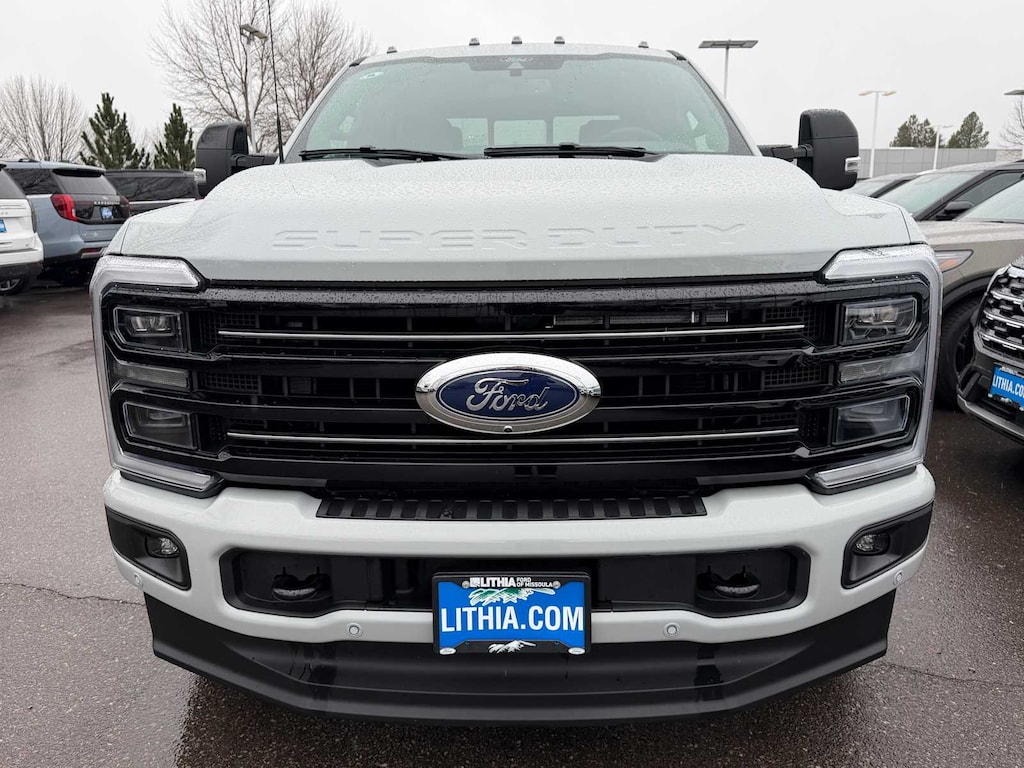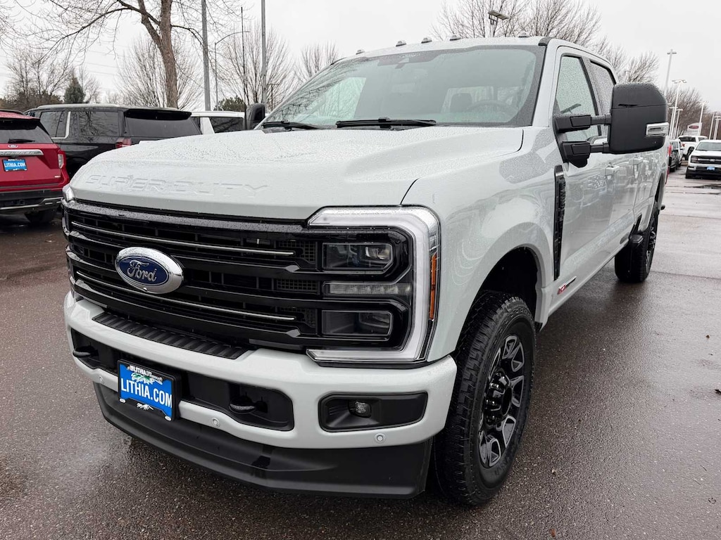 TWIN PANEL POWER MOONROOF map lights and moonroof switches, MAX RECLINE SEATS 10-way power driver and 8-way power passenger and 4-way headrests, ELECTRONIC-LOCKING W/3.55 AXLE RATIO, TRANSMISSION: TORQSHIFT 10-SPEED AUTOMATIC SelectShift and selectable drive modes: normal, eco, slippery roads, tow/haul and off-road (STD). Ford Platinum with Avalanche Gray exterior and Black Onyx interior features a 8 Cylinder Engine with 430 HP at 5500 RPM*.