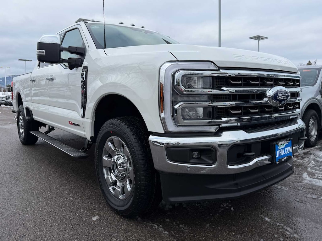 ENGINE: 6.7L HIGH OUTPUT POWER STROKE V8 DIESEL Turbo diesel B20, manual push-button engine-exhaust braking and Operator Commanded Regeneration (OCR), 250 Amp Alternator, 34 Gallon Fuel Tank, GVWR: 12,000 lb Payload Package, 3.31 Axle Ratio, Dual 68 AH AGM 750 CCA Batteries, TWIN PANEL POWER MOONROOF map lights and moonroof switches, CHROME PACKAGE Unique Chrome Mirror Caps, Chrome Front & Rear Bumpers, Wheels: 20 Chrome PVD Aluminum, unique center ornament, Chrome Door Handles, Monochromatic Paint, Chrome Exhaust Tip, MAX RECLINE SEATS 10-way power driver and 8-way power passenger and 4-way headrests, ELECTRONIC-LOCKING W/3.55 AXLE RATIO, TRANSMISSION: TORQSHIFT 10-SPEED AUTOMATIC SelectShift and selectable drive modes: normal, eco, slippery roads, tow/haul and off-road (STD). Ford King Ranch with Star White Metallic Tri-Coat exterior and Java interior features a 8 Cylinder Engine with 500 HP at 2600 RPM*.
