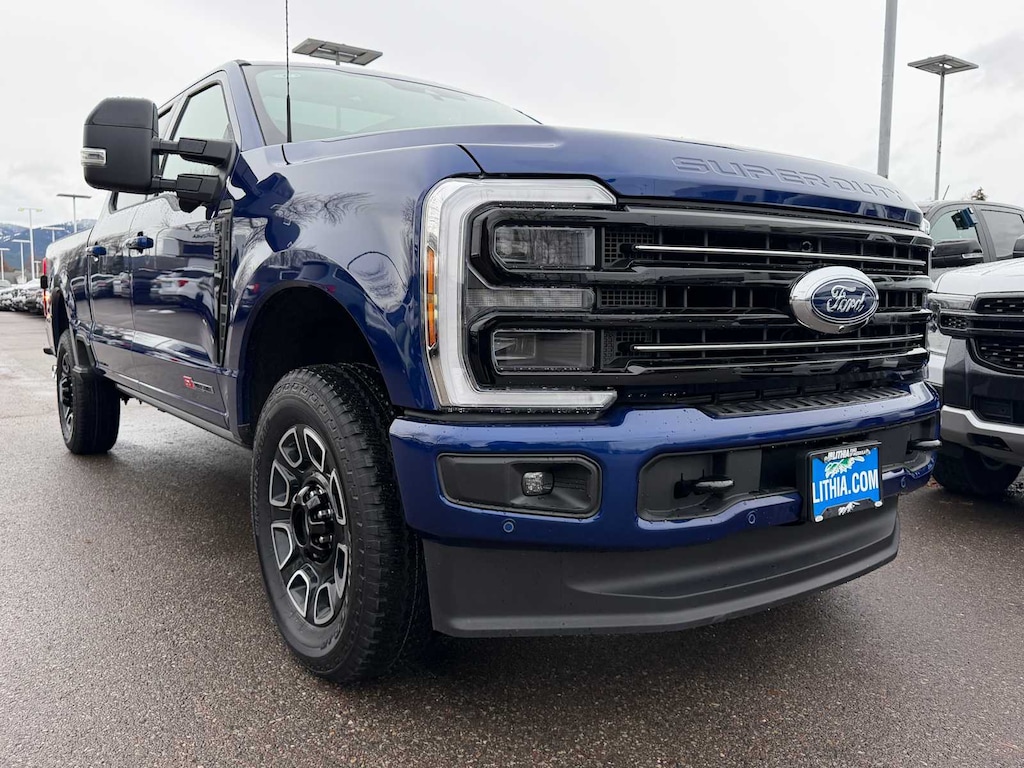 ENGINE: 6.7L HIGH OUTPUT POWER STROKE V8 DIESEL Turbo diesel B20, manual push-button engine-exhaust braking and Operator Commanded Regeneration (OCR), 250 Amp Alternator, 34 Gallon Fuel Tank, GVWR: 12,000 lb Payload Package, 3.31 Axle Ratio, Dual 68 AH AGM 750 CCA Batteries, TWIN PANEL POWER MOONROOF map lights and moonroof switches, MAX RECLINE SEATS 10-way power driver and 8-way power passenger and 4-way headrests, ELECTRONIC-LOCKING W/3.55 AXLE RATIO, TRANSMISSION: TORQSHIFT 10-SPEED AUTOMATIC SelectShift and selectable drive modes: normal, eco, slippery roads, tow/haul and off-road (STD). Ford Platinum with Argon Blue exterior and Black Onyx interior features a 8 Cylinder Engine with 500 HP at 2600 RPM*.