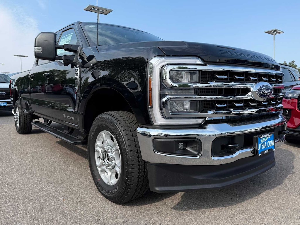 ENGINE: 6.7L 4V OHV POWER STROKE V8 TURBO DIESEL B20 manual push-button engine-exhaust braking and Operator Commanded Regeneration (OCR), 48 Gallon Fuel Tank, GVWR: 12,000 lb Payload Package, 3.31 Axle Ratio, Dual AGM 68 AH Battery, XLT PREMIUM PACKAGE Electrochromic Self-Dimming Rearview Mirror, PowerScope Trailer Tow Mirrors w/Heat, power-folding w/Autofold, telescoping, power glass, turn signal, high intensity LED security approach lamps and utility lighting system (LED side-mirror spotlights), LED Box Lighting, LED Center High-Mounted Stop Lamp (CHMSL), Remote Tailgate Release, Radio: B&O Sound System by Bang & Olufsen, HD Radio w/8 speakers including subwoofer, SYNC 4 w/Enhanced Voice Recognition, 12 LCD capacitive touchscreen w/swipe capability, information on demand panel, wireless phone connection, cloud connected, AppLink w/app catalog, 911 Assist, Apple CarPlay® and Android Auto® compatibility, digital owners manual and conversational voice command recognition, SiriusXM w/360L, a 3-month trial subscription, PLATFORM RUNNING BOARDS, ELECTRONIC-LOCKING W/3.55 AXLE RATIO, TAILGATE STEP & HANDLE, TIRES: LT275/70RX18E BSW Automatic Transmission (4) Spare may not be the same as road tire, TRANSMISSION: TORQSHIFT 10-SPEED AUTOMATIC SelectShift and selectable drive modes: normal, eco, slippery roads, tow/haul and off-road. Ford XLT with Agate Black exterior and Medium Dark Slate interior features a 8 Cylinder Engine with 475 HP at 2600 RPM*.