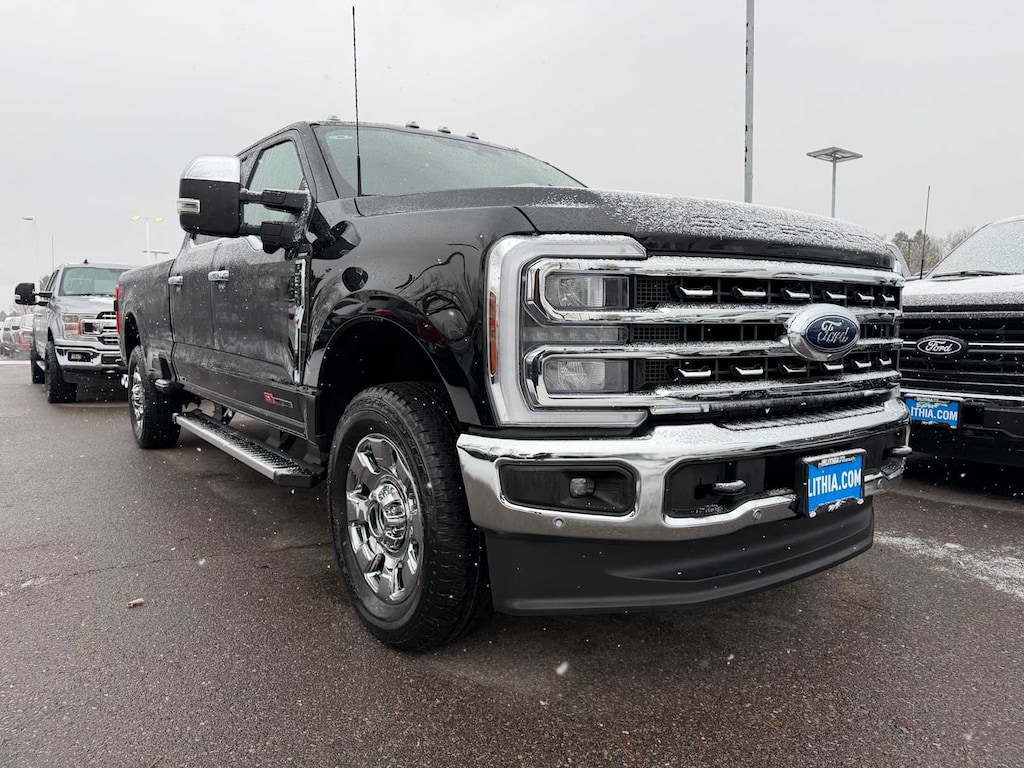ENGINE: 6.7L HIGH OUTPUT POWER STROKE V8 DIESEL Turbo diesel B20, manual push-button engine-exhaust braking and Operator Commanded Regeneration (OCR), 48 Gallon Fuel Tank, 250 Amp Alternator, GVWR: 12,000 lb Payload Package, 3.31 Axle Ratio, Dual AGM 68 AH Battery, LARIAT PREMIUM PACKAGE Pro Trailer Hitch Assist, Ford Co-Pilot 360 Assist 2.0, rear view camera and reverse brake assist, Pre-Collision Assist, Automatic Emergency Braking (AEB), pedestrian detection, forward collision warning, dynamic brake support and intersection assist, Post-Collision Braking, Lane-Keeping System, lane-keeping alert, lane-keeping aid and driver alert, Front & Rear Parking Sensors, Automatic High Beam, Adaptive Cruise Control w/Stop-and-Go, lane centering and predictive speed assist, Power-Sliding Rear-Window w/Defrost, Pro Trailer Backup Assist, trailer reverse guidance, Lane Departure Warning, TWIN PANEL POWER MOONROOF map lights and moonroof switches, CHROME PACKAGE Unique Chrome Mirror Caps, Tires: LT275/65Rx20E BSW Automatic Transmission (4), Spare may not be the same as road tire, Wheels: 20 Chrome PVD Aluminum, Chrome Door Handles, 6 Angular Bright Anodized Step Bars, Chrome Exhaust Tip, ELECTRONIC-LOCKING W/3.31 AXLE RATIO, TAILGATE STEP & HANDLE, TRANSMISSION: TORQSHIFT 10-SPEED AUTOMATIC SelectShift and selectable drive modes: normal, eco, slippery roads, tow/haul and off-road. Ford LARIAT with Agate Black exterior and Black Onyx interior features a 8 Cylinder Engine with 500 HP at 2600 RPM*.