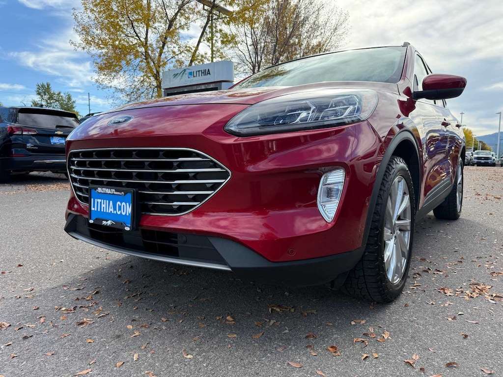 CARFAX One-Owner. Red 2021 Ford Escape Titanium AWD 8-Speed Automatic EcoBoost 2.0L I4 GTDi DOHC Turbocharged VCT FRESH WINDSHIELD WIPERS INSTALLED, FRESH AIR FILTERS INSTALLED, FRESH OIL CHANGE, MULTI POINT SAFETY AND MECHANICAL INSPECTION PERFORMED BY CERTIFIED TECHNICIAN, INTERIOR and EXTERIOR PROFESSIONALLY DETAILED FOR DELIVERY, NON-SMOKER!, AWD, Black Roof-Rack Side Rails, Chrome 5-Bar Upper Grille w/Chrome Surround, Class II Trailer Tow Package, Equipment Group 401A, Front & Rear Floor Mats, Head-Up Display, Heated Leather-Trimmed Front Sport Contour Seats, Leather Wrapped Steering Wheel, Navigation System, Panoramic Vista Roof, Titanium Elite Package, Wheels: 19 Luster Nickel-Painted Aluminum, Wireless Charging Pad.